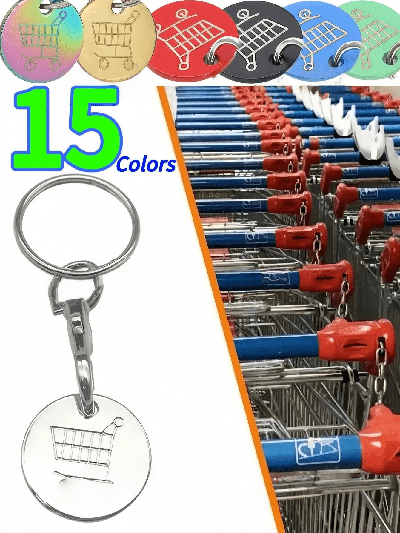 1pc-10pcs Shopping Cart Token Supermarket Trolley, Stainless Steel Shopping Trolley Remover, Shopping Trolley Token Pendants, Shopping Trolley Chips, Metal Stainless Steel Keychain, Keyring Decoration With Trolley Unlocking Key, Keyring Accessory