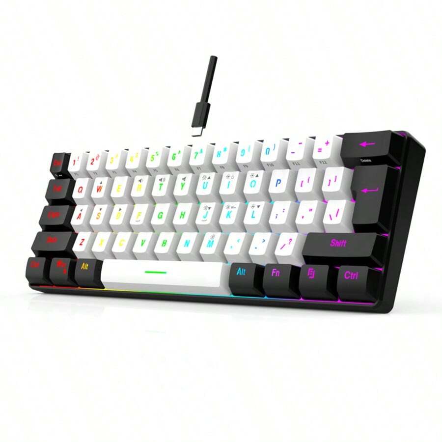 1pc 61-Key Wired White/Black Keyboard RGB Backlight, Gaming & Office Set, Suitable For Home, Office, And Game