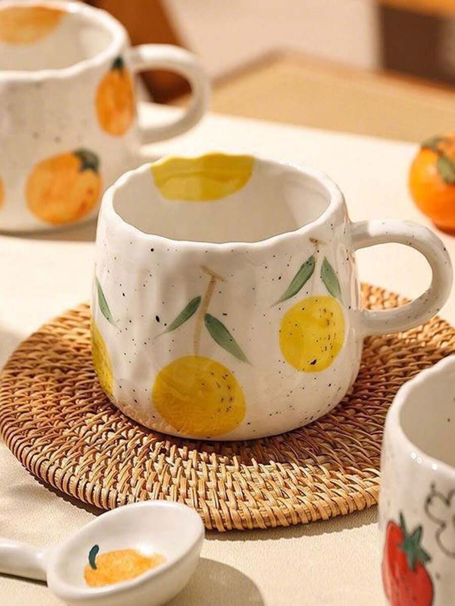 1pc Japanese Countryside Style Hand-Painted Orange Ceramic Coffee Mug, Suitable For Home, Office, Gift-Giving Back To School