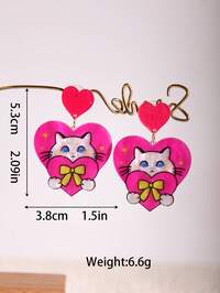 PinkSnail FashionCute Pink Heart Cat Acrylic Drop Dangle Earrings, Creative Statement Earrings For Women, Girls, Suitable For Valentine's Day, Summer, Winter, Vacation, Holiday, Beach Party, Gift For Her, Couple Gift #2 Bestseller