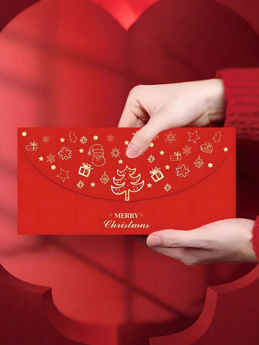 5pcs Christmas Card Envelopes, Money Envelopes, Gift Envelopes, For Christmas With Bronzing & Hollow Design Xmas Cash Gift Envelopes For Christmas New Year Holiday, Festivals, Weddings, Parties, Birthdays And Christmas Celebration, Unique Collectibles