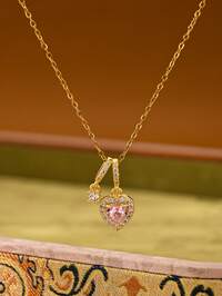 Simple fashion jewelry1pc 18K Gold Plated Stainless Steel Necklace With Cubic Zirconia Heart Pendant, Versatile Elegant Luxury Style, Suitable For Women's Daily Wear, Party, Gift For Girlfriend, Social Gifting, Material, Classic Eternal Design, High Quality Minimalist Style, Valentine's Day Gift, Multi-Pendant #1 Bestseller