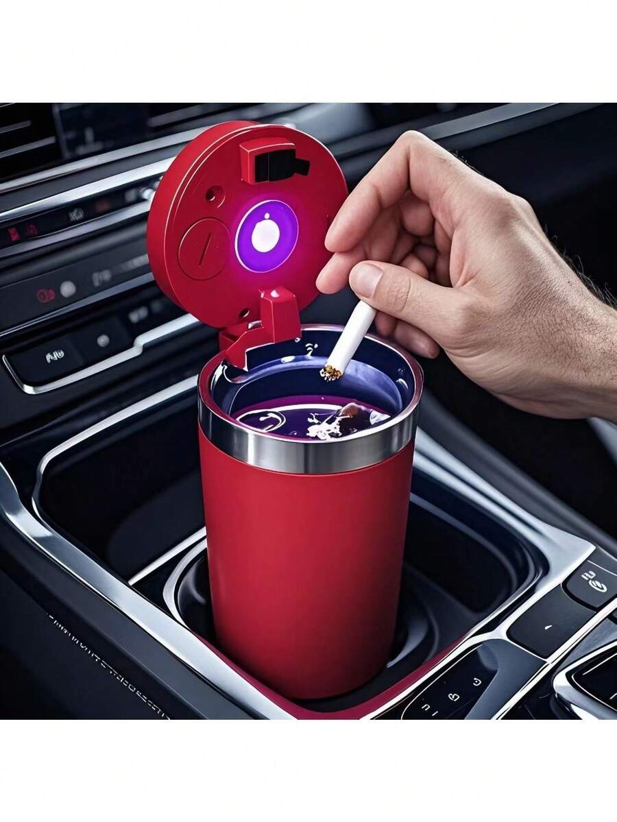 Automatic Car Ashtray Set With LED Light, Removable Cleaning Brush, Compact Design, Easy Installation