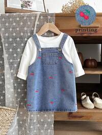 Playful PalsSHEIN Playful Pals Baby Girl Denim Mini Dress, Vintage Sweet & Cute Vacation Style Casual College Look, Recommended For Street Snap, Washed Light Blue Denim, Front Sides With White 3D Bow Accents, Lively & Playful, Collared Neckline Simple & Casual, Puff Sleeves Design Adorable & Sweet, Fitted Silhouette , Suitable For Daily Wear, Beach Vacation, Leisure Activities, An Essential Versatile Fashion Piece For Spring & Autumn #1 Bestseller