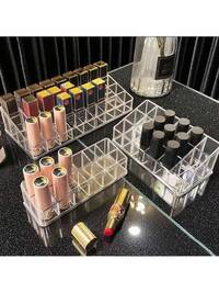 1pc Multi-Compartment Lipstick Organizer - Clear Acrylic Makeup Storage Box For Lipsticks, Eyebrow Pencils & Brushes - Perfect For Bedroom Vanity