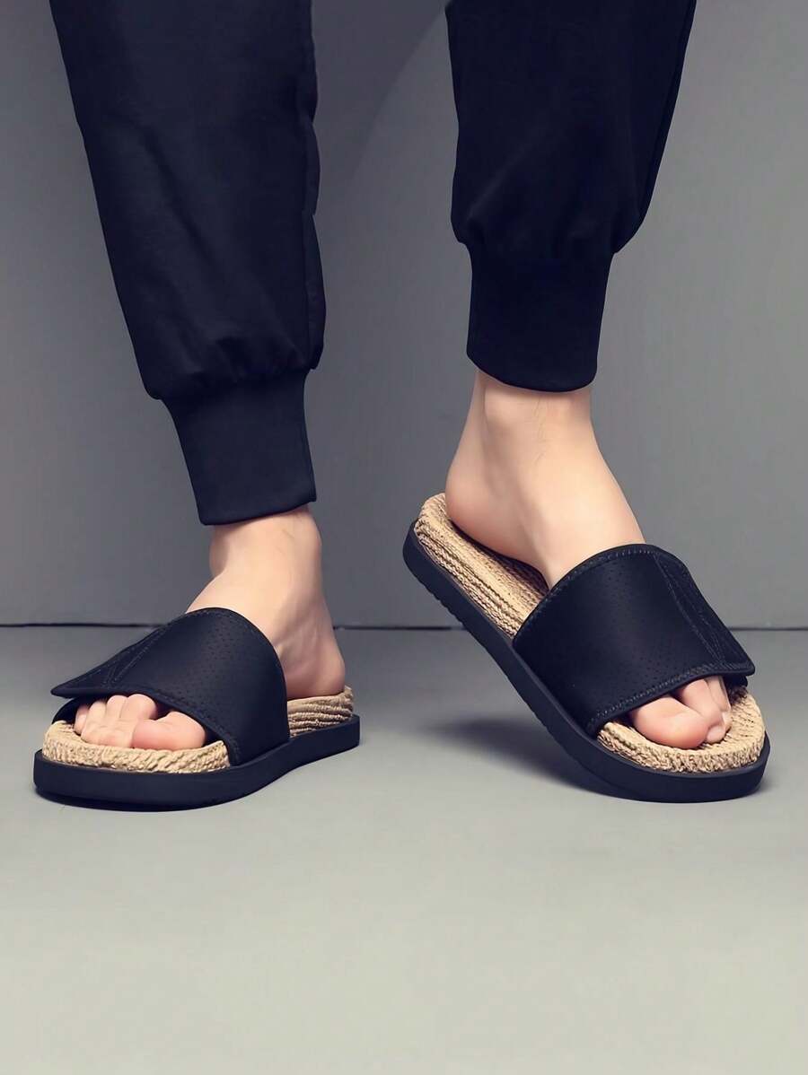 Best-Selling Men's Black Strap Slides, New Summer Outdoor Street Anti-Slip Sandals, Suitable For Casual Wear, Indoor And Outdoor Fashion Slippers
