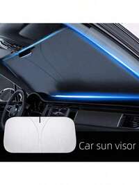 1pc Automatic Retractable Car Sun Shade - UV Protection, Heat-Resistant Aluminum Material, Universal Fit For All Vehicles, Blocks Harmful Rays, No Power Needed, Easy Installation On Windshield, Foldable Sun Visor, Compact Design, Lightweight Shading, Durable Structure, Heat Insulation Cover, For Car Enthusiasts, Summer Drivers #2 Bestseller