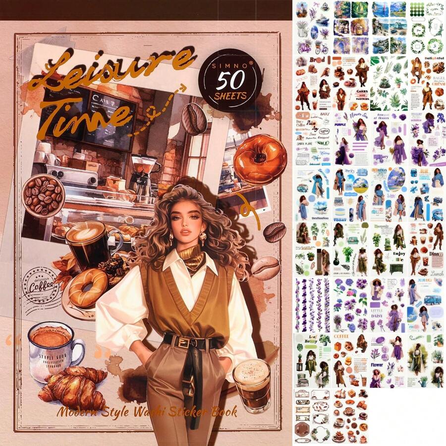 Character Scrapbook Sticker Book For Craft Lovers- 30 Pre-Cut Vintage Aesthetic People Washi Stickers & 20 Landscape Collage Material Papers For Journaling, Junk Journals, Collage Supplies,