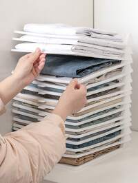 This 1pc Storage Bag Can Be Matched With A Variety Of Clothing, Including Women's White T-Shirts, Black Pants, Winter Wear, Elegant Dresses, White Shirts, Long-Sleeved Tops, White Jumpsuits, Spring Wear, Summer Tops, As Well As Jeans, Boots And Skirts. It Meets The Storage Needs Of All Four Seasons And Fits The Minimalist Home Decor Style. Heavy Duty Plastic Stackable Clothes Folding Board - Space Saving Design, Portable Clothes Rack, Suitable For Dorm, Home - Easy To Clean Shirts, Skirts, Jeans, Laundry Storage, Dorm Essential, Minimalist Design, Efficient Space Saving, Sturdy Structure, College Student Must-Have, Shelf Pad 1 Slouchy Quick Folding Clothes Board, Short Sleeves, Pants, Shirt, T-Shirt, Jacket, Organizing Folding Board, Folding Board Dress Pants Shoes Jeans Boots Skirt,Spring,Minimalist,Summer Tops #4 Bestseller