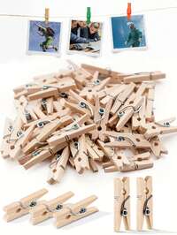 100pcs Mini Clothes Pins For Photos, Small Natural Wooden Clothespins, Mini Photo Clips, Small Clothespins For Baby Showers, Parties, Crafts, DIY Projects,Photos, Crafts, Arts, Cocktails Heavy-Duty Clothespins, 2.17-Inch Metal Clips, Stainless Steel With Rubber, Ideal For Photo Display, Laundry, Socks, Bag Clips, Kitchen Organization, Portable, Wall-Mountable, No Power Required, Essential Home & Kitchen Storage Solution