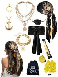 5pcs/Set Pirate Costume Accessories Set, Suitable For Women, Men And Kids, Includes Santa Pirate, Male And Female Pirate Cosplay Christmas Party Outfit And Accessories, Containing Pirate Headscarf, Belt, Necklace, Eye Patch And Earrings, Applicable For Pirate Roleplay, Masquerade And Halloween Occasions. #6 Bestseller