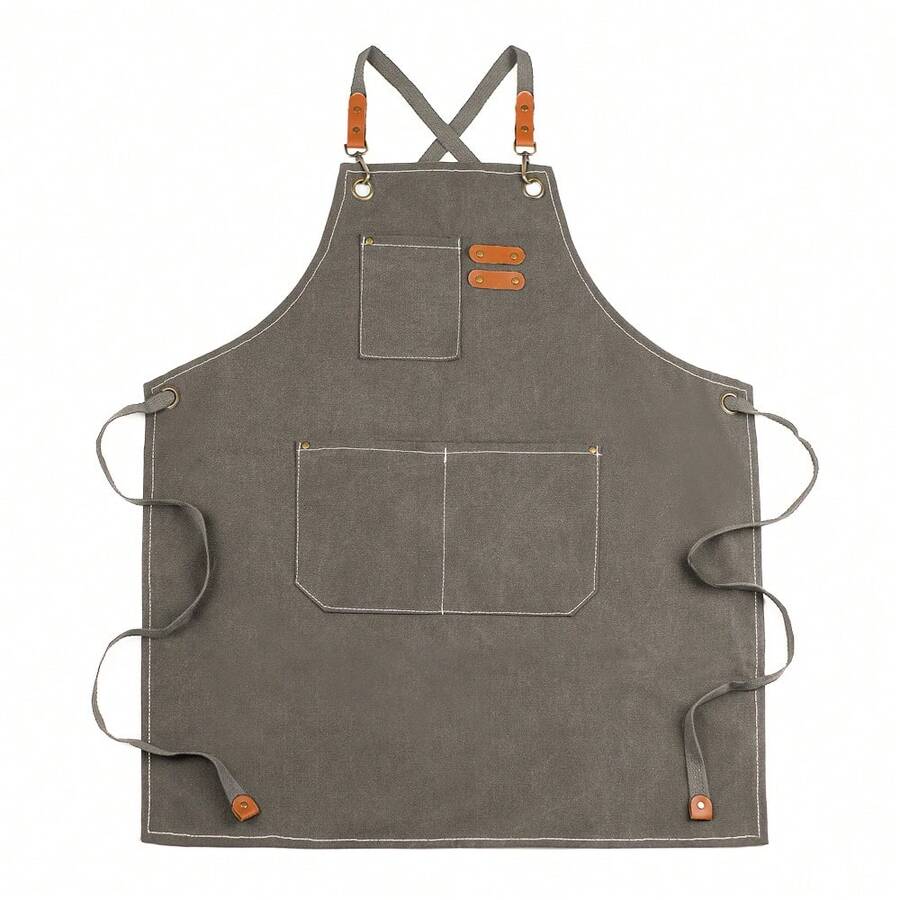 Cross-Back Apron, Canvas Material, Suitable For Outdoor Barbecue, Outdoor Work, Art Painting And Gardening, With 3 Pockets, Adjustable Strap