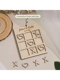 Customizable Wooden Game Board With Name & Date, Personalized Wedding Game Board Gift, Guest Gifts, Personalized Wooden Dining Table Decor, Multi-Functional, Durable, Decorative, Reusable, Exquisite, Fashionable, High-Quality, Colorful, Modern, Customized, Personalized, Unique, The Perfect Gift For Him, The Perfect Gift For Her, Boyfriend 1pc Personalized Valentine's Day Tic-Tac-Toe Board Game, Custom Wooden Board Couple Game, Custom Travel Game, Fashionable, Colorful, Cute, Simple, Kawaii, Unique Personalized Customized Gift, Suitable As Christmas Gift, Valentine's Day Gift, DIY Customized Birthday Gift, Anniversary Gift, Couple Gift, Valentine's Day Gift, Wedding Gift, Party Gift, Best Friend Gift