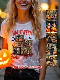 Vistaix1pc Customized Halloween T-Shirt, Personalized Halloween T-Shirt, Customized Name T-Shirt, Customized Photo T-Shirt, Customized Boyfriend T-Shirt, Halloween Gift, Birthday Gift, Wedding Gift, Mother's Day Gift, Gift For Best Friend, Gift For Mom/Her/Girlfriend/Wife/Friend