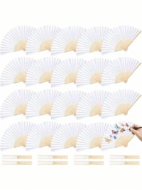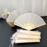 20/10/6/2/1pcs White Foldable Hand Fan, Includes Mesh Drawstring Storage Bag, DIY Blank Bamboo Fabric Folding Fan, Suitable For Wedding Party Favors, Bridal Shower Gifts, Wedding Decor, Dance Props, Home Decor, School Decoration, Birthday, Wedding, Graduation, Mother's Day, Christmas #2 Bestseller
