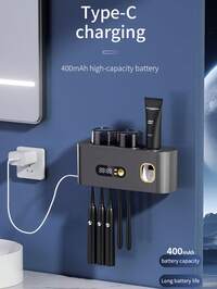 1pc No-Drill Wall-Mounted Smart UV Toothbrush Sterilizer With 5 Slots, Personalized Custom Name, 2000mAh USB Rechargeable Toothbrush Storage Box With Smart Cleaning, Cute Bathroom Organizer, Personal Care Tools,Bathroom Decorative Accessories, Great Holiday Gfts For Friends,Workers,School,Home,Office! Portable Cleaning Box With Purple Light-Large Capacity, 5-Minute Solution, USB Power Supply, Compact Design, Used For Telephone, Earphone, Denture, Toothbrush, Key And Hearing Aid Accessories, Travel And Home Use, Cleaning Accessories, Compact Solution.