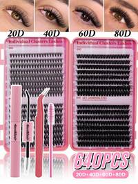544/640pcs D Curl Individual False Eyelashes Set, Includes Glue, Brush And Tweezers, Beginner-Friendly, Creates Soft & Natural Lash Effect, Fluffy & Voluminous, DIY Segmented False Lashes Suitable For Different Eye Shapes, Lashes + Lash Glue + Tweezers Kit, Easy To Use, Beginner-Friendly, Fluffy & Voluminous False Lashes Set, Suitable For Daily, Outdoor, Date, Eye Makeup, Student Back To School Gift, Eyelash Set, False Eyelashes 168pcs D-Curl Natural Looking Eyelash Extension Kit, Delicate & Lightweight, 9-12mm Single Lashes, Includes Lash Glue And Tweezer, DIY At Home, Suitable For Beginners, Travel, Daily Wear, Weddings, Dates, Parties, Holidays, Also Great As Christmas/Halloween/Gift Eyelash Set