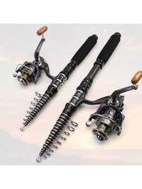 1pc Black Short Mini Fishing Rod, Compact Fishing Rod - Ultra-Portable And Space-Saving Design With Smooth Retraction Mechanism,Telescopingmall Sea Fishing Pole,Outdoor Fishing Tackle,For Adaptable Freshwater, Saltwater, And Ice Fishing In Lakes, Rivers Streams, Ocean, Bay, And Winter(Excluding Drum)