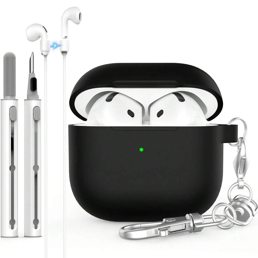 For AirPods 4 Case Cover 2024 With Cleaner Kit, Soft Silicone Protective Case Compatible With Apple AirPods 4th Generation Case For Women Men,AirPod 4 Case Accessories With Keychain
