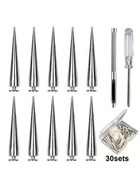 Pack Of 30 Punk Rivets Screwdriver Punching Tool,7 X 38 Mm, Rustproof Decorative Rivets, Clothing Screw Rivets, DIY Rivets, Screw-On Rivets, Metal Gothic Spikes, Decorative Rivets, Pointed Rivets For Bags, Clothes, Shoes