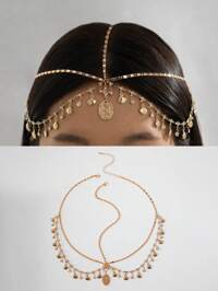 1pc Minimalist Vintage Bohemian Faux Turquoise Tassel Headband, Fashionable Gold Chain Hair Accessory Suitable For Women Everyday And Festivals, Headpiece, Head Jewelry, Head Pieces Jewelry, Hair Jewelry, Hair Vine Chain, Jewellery For Women, Gold Head Piece, Wedding, Hair Accessories, Bride To Be #2 Bestseller