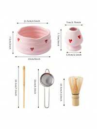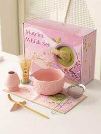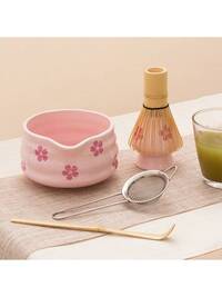 4pcs/Set Ceramic & Bamboo Matcha Whisk Set, Includes Bowl, Bamboo Whisk, Matcha Whisk, And Pink Embossed Cherry Blossom Bowl, Matcha Scoop And Ceramic Whisk Holder, Ceramic Travel Tea Set, Suitable For Japanese Matcha Tea Ceremony, Matcha Lovers, Home Tea Party, Wedding Gift, Mother's Day Gift, Gift For Mom, Gift For Girlfriend #5 Bestseller