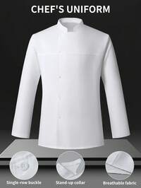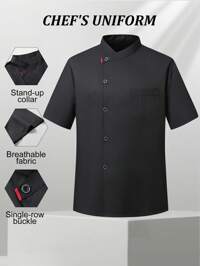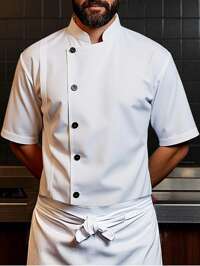 Manfinity Homme ,1pc Unisex White Chef Jacket, Single Breasted, Short Sleeve, Comfortable, Breathable, Ideal For Kitchen, Baking, Restaurant, Hotel Work Solid Color Stand Collar Short Sleeve Chef Shirt For Men Men Dress Shirts Short Men Clothing Dress Shirt Shirts For Men, Chef Uniform, White Chef Coat, Short Sleeve Chef Coat #3 Bestseller