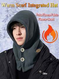 1PC Winter Men's And Women's Balaclava Hat, Hat Scarf Integrated Hat, Outdoor Windproof And Warm Plush Hat, Made Of Polyester Fiber Material, With Multiple Colors To Choose From, Button Design, Essential For Warmth, Windproof And Cold Resistance, Thick Plush, Suitable For Cycling, Hiking, Outdoor Travel,Office Workers And Travelers. #7 Bestseller