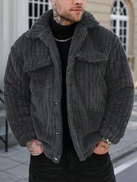 Manfinity Homme Large Size Flap Detail Button Front Flannel Jacket Men's Short Sleeve Outerwear Men's Winter Clothing, Men's Jacket, Men's Front Button Long Sleeve Pocket Simple Jacket, Casual Everyday Wear, Men's Jacket, Men's Jacket For Fall And Winter, Boyfriend Gift, Warm Long Sleeve Casual Corduroy Flannel Jacket For Going Out, Teddy Bear Lined Coat Men's S, Men's Street Jacket, Men's Short Sleeve Outerwear, Street Style American Vintage Corduroy Jacket Vintage Jacket Men Men Sweater Jacket Pluse Size Men
