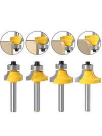 4pcs Woodworking Round Corner Router Bits, Carbide Tipped Blades For Wood Planing, 1/4" Shank, For Wood Trimming Machines