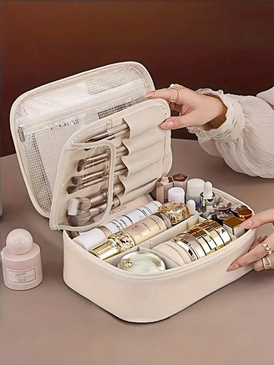 New Popular Large-Capacity Waterproof PU Leather Cosmetic Bag With Detachable Makeup Tool Storage Bag, Portable Toiletry Bag, Portable Travel Toiletries And Skin Care Product Storage Bag, Fashionable Multi-Functional High-End Travel Cosmetic Bag Large-Capacity Women's Cosmetic Bag, Suitable For Women, Wife, Mother, Aunt, Bridal Gifts, Holiday Gifts