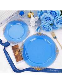 50pcs/25pcs/20pcs/10pcs Transparent Blue Rimmed Plates, Party Decor Plates, Western Dinner Plates, Banquet Plates, Pasta Plates, Large 10.25in/Small 7.5in, Reusable Washable Blue Rimmed Plates, Transparent Blue Baroque Style Plates With Gold Foil Rim, Suitable For Party, Banquet, Wedding, New Year, Valentine's Day, Quality Plate Set10pcs/60pcs Solid Color 7-Inch Party Paper Plates, Birthday Party Decorations, Red, Light Blue, Yellow, Pink, Fuchsia, Navy Blue Disposable Tableware For Birthday Party, Holiday Party, Camping, Wedding And More 30/50pcs Kraft Brown Paper Food Trays, Oil-Proof Food Paper Tray Kraft Paper Boat Box, Portable Food Paper Tray For Family Picnic, Suitable For French Fries, Corn Flakes Snacks, Hot Dogs, Taco BBQ, Popcorn Parties, Picnics, Wedding Parties, Multi-Purpose Baking Tool, Kitchen Essentials, Kitchen Accessories (Brown) 10/25/50/75/100/150pcs Gold Dinnerware Set, Includes Cake/Salad Forks, Spoons, Knives, 7" And 9" Gold Rimmed Paper Plates, Reusable And Washable, Suitable For Home, Restaurant, Wedding, Birthday, Party, Halloween, Christmas