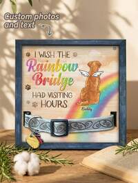 PETSINCustom Personalized Pet Portrait Wooden Photo Frame, Pet Memorial Photo Frame, With Collar Hanging Option, Collar Display Frame, Rainbow Bridge Theme, Featuring Claw Prints And Angel Wings Patterns,Home Decor, Wall Decor, Pet Bereavement Gift, Memorial Gift For Pet Lovers, Condolence Gift, Mourning Keepsake. #2 Bestseller