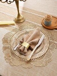 4/6pcs Beige Woven Texture Leather Placemats, Round Placemats, Fashionable Tabletop Decor, Easy To Store, Reversible, Durable, Heat-Resistant, Waterproof, Suitable For Daily Use, Weddings, Parties, BBQs, Baby Showers, Birthdays, Mother's Day And More 1pc/4pcs/6pcs/8pcs Set Gold Minimalist PVC Waterproof Floral Placemats, Easy To Clean, Washable, Wipe-Able, Non-Slip, Heat-Resistant, Suitable For Room Decor, Dining Table Decor, Home Decor, Fit For Holiday, Birthday, Party, Wedding And Banquet #8 Bestseller