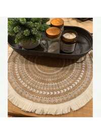 1pc/4pcs/6pcs/8pcs 15 Inch Round Woven Burlap Placemat With Tassel, Suitable For Dining Room, Kitchen, Dining Table Decoration, Bohemian Style, Heat-Resistant, Natural Woven Table Mat, Suitable For Indoor And Outdoor Home Gatherings, Minimalist Dining Room Decor, Protect Tabletop For Various Dinnerware, Holiday Gift #9 Bestseller