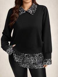 ZelaraZelara Plus-Size Women'S Leopard Print Color-Blocked Shirt Collar Two-Piece Top, Thanksgiving Women'S Clothing, New Year Women'S Clothing, Winter Dress, Winter Clothing, Women'S Rave Party Clothing, Elegant Plus-Size Top/Curvy Women'S Top/Valentine'S Day/Elegant Women'S Shirt/Women'S Holiday Clothing/Birthday Dress/Back-To-School Dress/Plus-Size Formal Dress/Afternoon Tea Party Top, Leopard Print Patchwork Long-Sleeved Top, Plus-Size Faux Two-Piece Top, Women'S Autumn Clothing, Winter, Fall, Halloween, Christmas, New Year, Thanksgiving, Party Clothing.New Year Women,New Year Clothes,Christmas Women'S Clothing,Stylish Women'S Blouses,Elegant Blouses For Women,Leopard Print Top #1 Bestseller