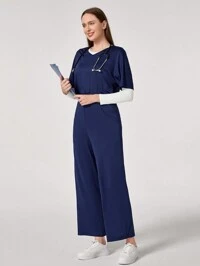 TaskEZ Solid Color Waist Fitted Uniform Bodysuit Women's Scrub Nurse SHEIN TaskFit Women's Nurse Uniform Surgical Gown Health Worker Uniform Frosted Printed Jumpsuit With Shoulder Sleeves, 4 Pockets And Drawstring At Waist