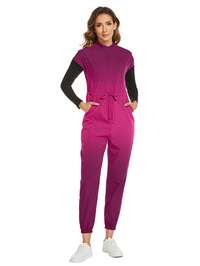 Zipper Drawstring Waist Thick Sole Summer Stand Collar Jumpsuit, Uniform