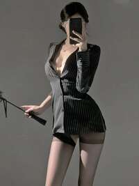 Fashionable Sexy Striped Cinched Waist Side Slit Long Sleeve Shirt