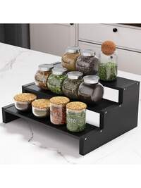 1pc Bamboo Spice Rack, 3-Tier Stepped Condiment Organizer For Cabinet, Kitchen Storage Helper - Back To School, Kitchen Supplies Organization, Room Decor, Suitable For Kitchen, Dining Room, Party, Camping, Gathering, Great Gift For Friends And Family