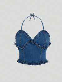 SUMWON KidsSHEIN Teen Girls Elegant Vacation Beach Casual Stylish Halter Neck Backless Striped Top, Suitable For Music Festival, Graduation, Holidays,Daily Travel, Outdoor, Home, Brunch, Tea Party, Commute, Airport Wear,Girls Autumn Fall Clothes Outfits,Kids Back To School Clothes