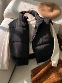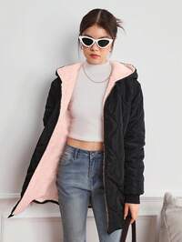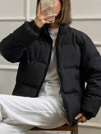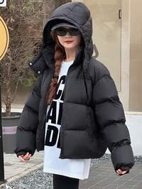 DazySHEIN Teen Girls Padded Jacket, Black Long Sleeve Hooded Front Zipper Ribbed Cuffs, Thermal Lined, Casual Versatile, Suitable For Autumn/Winter Outings, Shopping, Vacation, Commuting, Can Be Paired With Tops, Hoodies, Jeans, Sweatpants #3 Bestseller
