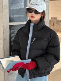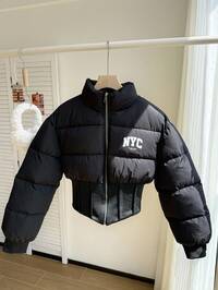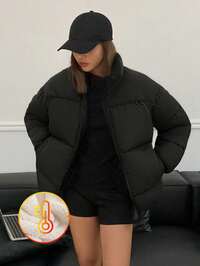 SHEIN Teen Girl Y2K Style Black Fashionable Versatile Four-Button Stand Collar Padded Jacket, PU Material, Suitable , Outerwear, Button-Up Cardigan, Tracksuit, Casual, Jacket, Leather, Back To School,In Fall/Winter