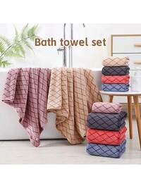 1pc/2pcs Ultra-Soft Microfiber Towel With Gold Trim, Coral Fleece, Black, Blue, Purple, Green, Gray, White, Bathroom Decorative Towel (Light & Thin), Lightweight, Soft, Absorbent, Non-Shedding, Unisex, Suitable For Bathroom, Beach, Pool, Spa, Hotel1 Pc One Piece Bath Towel, Quick-Drying Towel, Christmas Gift, Cute Cartoon Print, Suitable For Home, Sauna, Or Hot Spring, Machine Washable, Soft And Comfortable, Suitable For All Seasons, Sauna Towel, Household Towel, Printed Pattern, Modern Design, Microfiber Towel, Soft Fabric, Beach Accessory, Gift For Gift Shoppers, Anime Fans 3 Piecesbath Towel Set, 100% Cotton, Including 1 Bath Towel And 2 Face Towels. Luxurious, Soft, Skin-Friendly, With Good Water Absorption, Quick-Drying And Convenient. Suitable For Home, Hotel, Travel, Fitness, Beauty SPA, And Can Also Be Used As A Gift. Face Towel.
