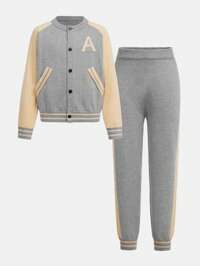 2pcs/Set Tween Boys Letter Color Block Casual Cardigan & Trousers Outfit, Autumn/Winter