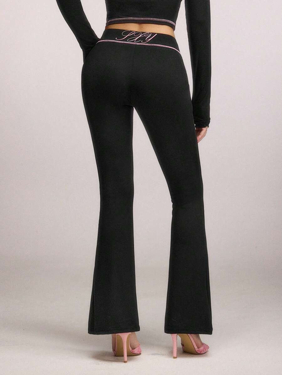 SHEIN SXY Women's Printed Wide Waistband Flare Leggings