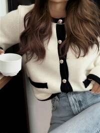 ב גוש צבעים קרדיגנים לנשים(500+)