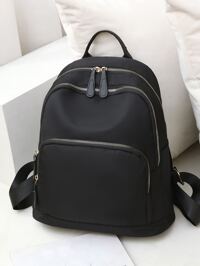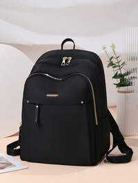Solid Color Women Functional Backpack, Suitable For Commuting And Traveling; Solid Color Women Simple Daily Functional Backpack; Solid Color Women Functional Backpack, Simple Sports Style Black Backpack, School Supplies, School Backpack, School Bag, Backpack For School, Back To School Backpack, School Bookbag, Big Backpack, Backpack School, Back To School Bags, Large Capacity, Waterproof, Laptop Compartment, Lightweight, Portable, Foldable, Classic Casual, Suitable For Teen Girls Women College Students, Perfect For Back To School, First Day Of School, Middle School, High School #2 Bestseller