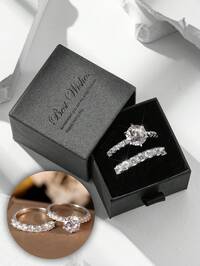 TONSI1pc/Gift Box Gold Ring, Silver Ring For Women, Wedding Rings, Zirconia Rings, Women Gift, Birthday Gift, Couple Gift, Gift For Mom, For Girlfriend, For Best Friend, Gift Box Valentines, Mom, Mother, Mother's Day, Gift 1 Box 4pcs Heart-Shaped Jewelry Set, Customizable Heart Necklace, Earrings And Bracelet, Suitable For Daily Wear, Parties, Dates, Weddings, Bridal Gifts, Gifts For Mom, Birthday, Valentine's Day