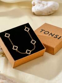 TONSITONSI 1pc Minimalist Elegant Versatile 5-Petal Flower Necklace, 18K Gold Plated Stainless Steel Delicate Chain, Compact Jewelry Gift Box, Great Gift For Yourself, Friends, Sisters, Mothers, Daughters, Colleagues, Wives On Holidays, Birthdays
